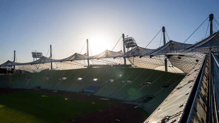 Seit den Olympischen Spielen 1972 prägt das Stadion das Stadtbild Münchens. Ein Eyecatcher ist das weltberühmte Zeltdach – eine filigrane Stahlkonstruktion, die rund 78.000 Quadratmeter des Stadionareals und etwa die Hälfte des Stadions überdeckt. In luftiger Höhe bis zu 50 Metern über dem Spielfeld können Besucher auf Stegen das Dach begehen – mit Blick über München, hinab auf das Spielfeld und bei klarem Wetter bis in die Alpen. Für Adrenalin-Fans gibt es zusätzlich den „Flying Fox“, eine rund 200 Meter lange Seilrutsche, die in etwa 35 Metern Höhe quer über den Stadionrasen führt.